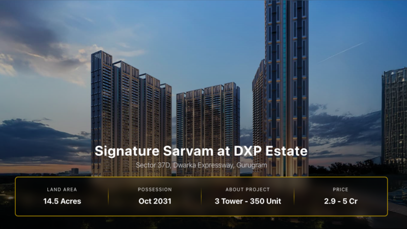 AN EXPRESSWAY OF REALTY Signature Sarvam at DXP Estate Welcome to Signature Global Sarvam At DXP Estate Sector 37D. The premium residential property here offers a contemporary lifestyle, spread across...