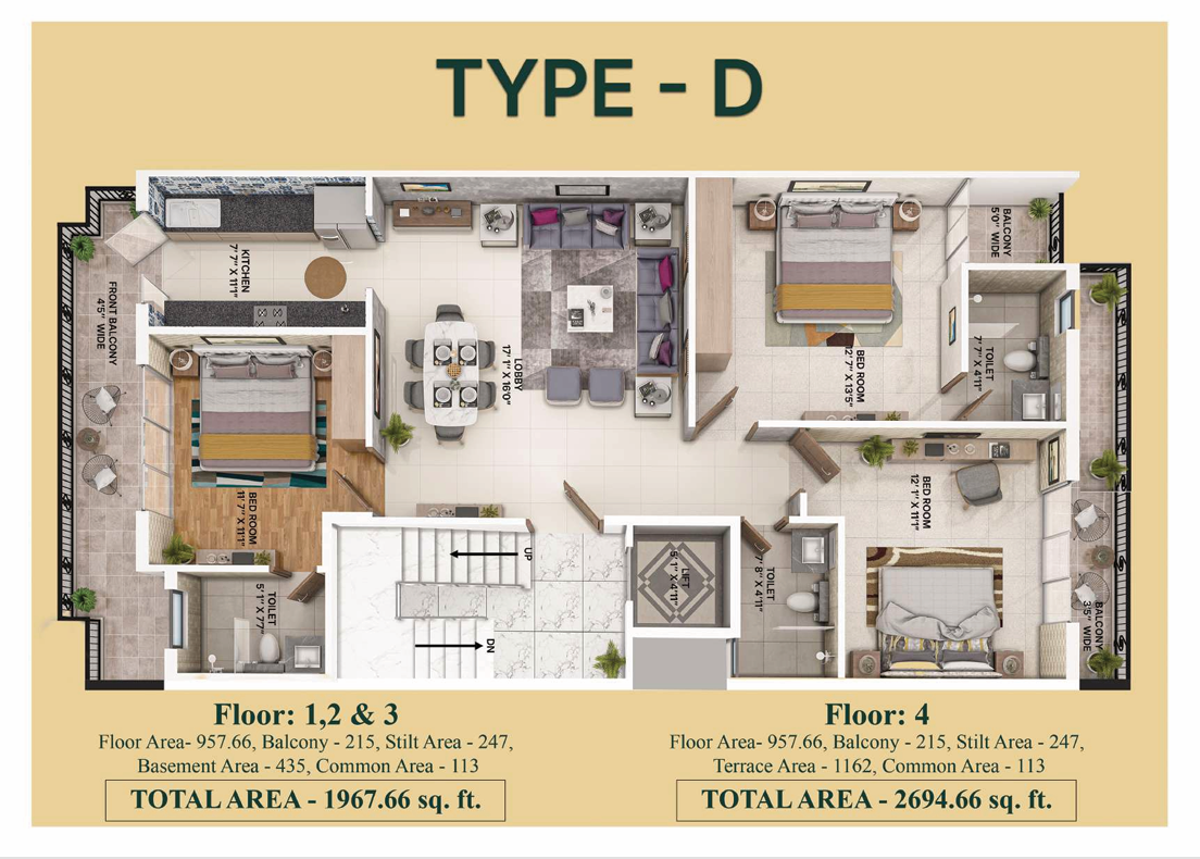 π Configuration: 3BHK + 3T Ultra-Luxury Independent Floors